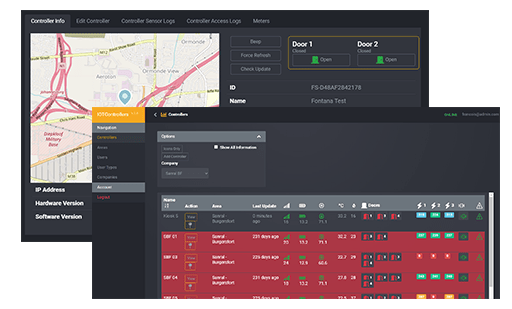Dashboard to view status of doors, manage access, receive tamper and alerts, temperature & humidity, reports